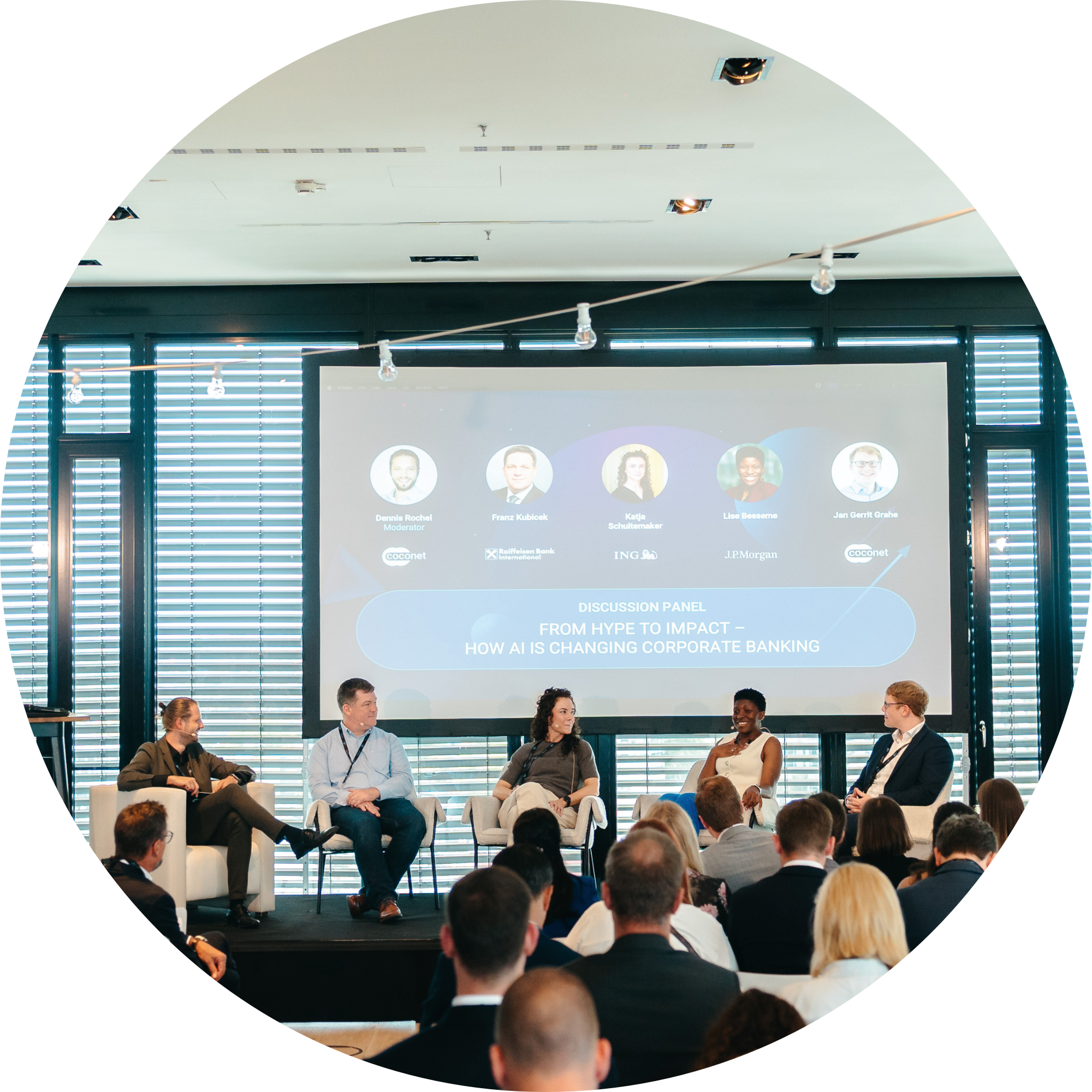 - Afternoon Keynotes & AI Panel: Top speakers shared their visions for the future of corporate banking, followed by a lively panel discussion on the real impact of AI.