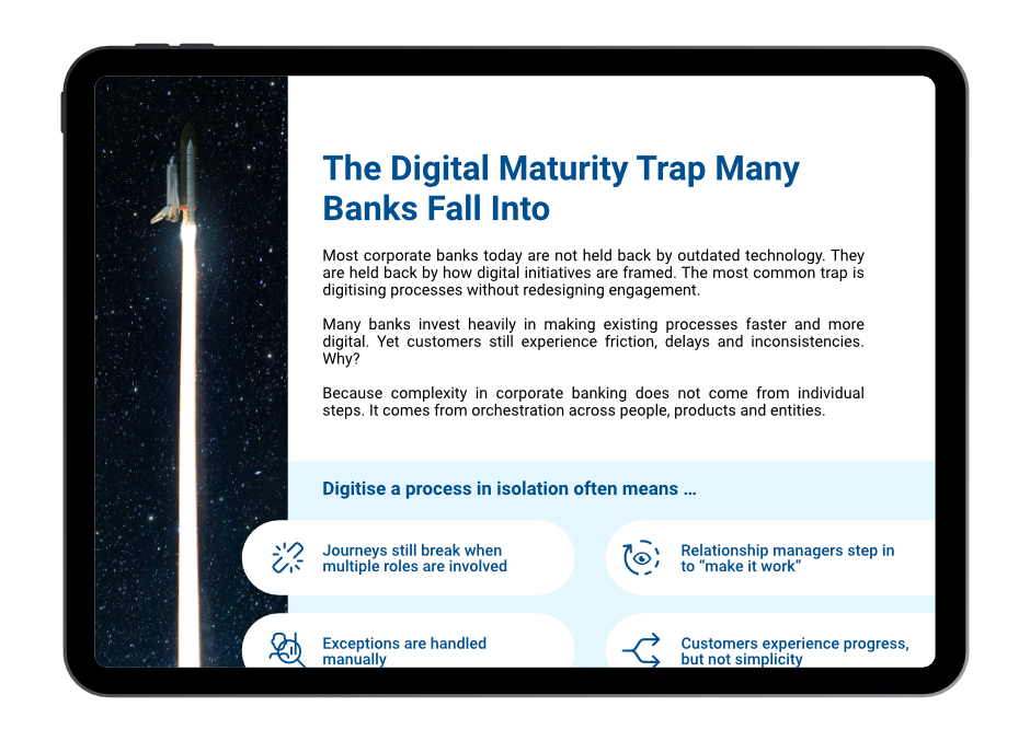 Many digital initiatives aim to make processes faster and more efficient — yet customer friction often remains. This short insight explores a common reason why: focusing on digitising individual processes instead of redesigning customer engagement across journeys, roles and entities.